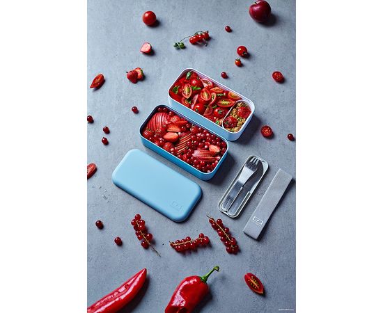 В современном мире здоровое питание — залог успеха. Ланч-боксы Monbento полностью сохраняют полезные свойства продуктов, герметичны и изготовлены из безопасного пищевого пластика. Удобный формат из 2 контейнеров по 500 мл не займет много места и обеспечит полноценный прием пищи. Контейнеры фиксируются друг над другом эластичным ремешком, а также их можно использовать по-отдельности. Ланч-бокс является герметичным, не деформируется при нагревании и включает прорезиненные элементы на каждой промежуточной крышке.
