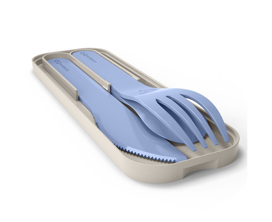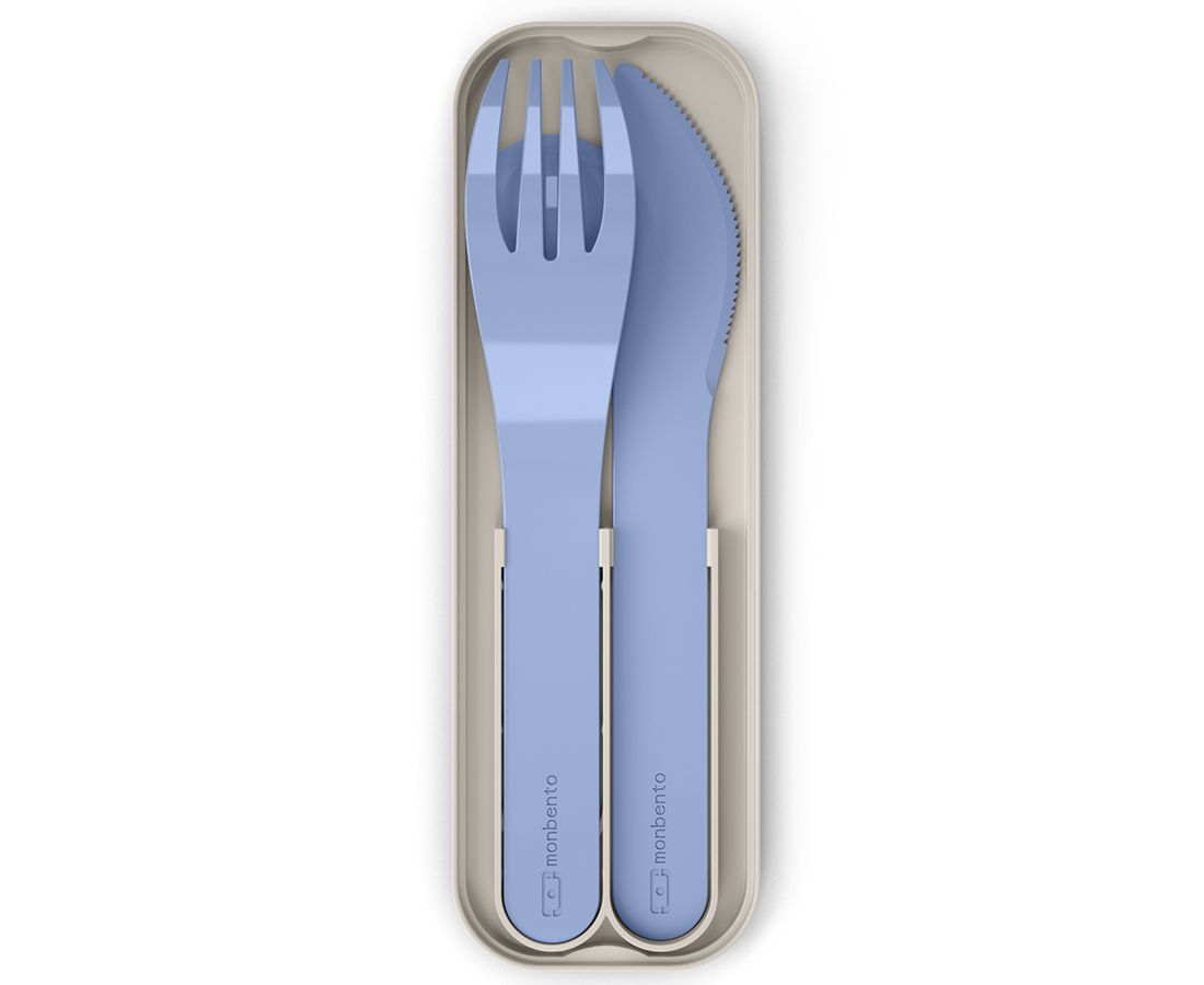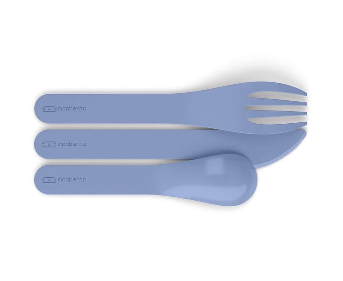 Компактные приборы хранятся в специальном футляре. Набор удобно хранить под крышкой ланч-бокса Monbento. Приборы изготовлены из PLA - 100%, биоразлагаемого пластика, произведенного из растений. При этом они очень прочные. Приборы изготовлены без примеси вредного для здоровья бисфенола-а.