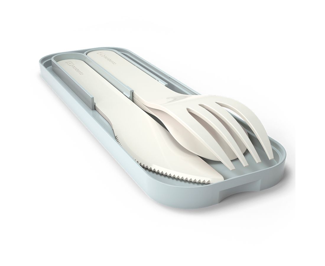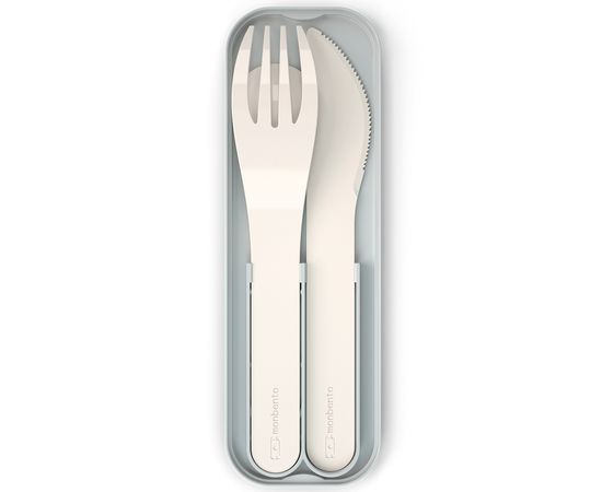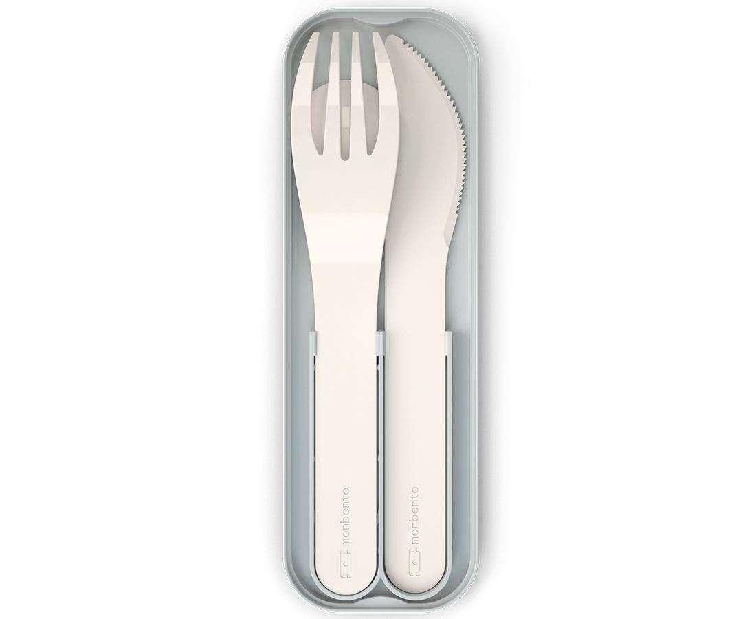 Компактные приборы поставляются в специальном футляре. Набор удобно хранить под крышкой ланч-бокса Monbento. Изделия выполнены из PLA - 100%, биоразлагаемого пластика, произведенного из растений. Материал отличается прочностью и устойчивостью к износу. В составе отсутствуют вредные соединения, такие как бисфенол-А.